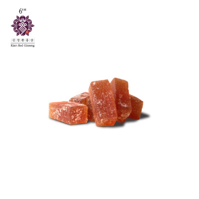 | 원재료명 및 함량 | 물엿, 설탕, 기타설탕(흑설탕), 한천[(분말한천, 꼬시래기-인도네시아산) 국내산], 전분가공품 [오부라이트분말4 (감자전분), 레시틴 (해바라기), 국내산], 6년근 홍삼농축액 (홍삼성분 70mg/g이상, 고형분 60% 이상, 국산) 0.5% [원료삼 배합 비율: 홍삼근류 70%, 홍미삼류 30%], 고구마전분(국내산), 허브향(허브오일) |