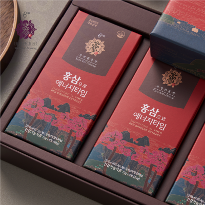 | 원재료명 및 함량 | 6년근 홍삼농축액(진세노사이드 Rg1, Rb1및 Rg3의 합 10mg/g, 고형분 60% 이상, 국산)8.8%, 저당, 식물혼합농축액, 정제수 [원료삼 배합비율: 6년근 홍삼근(국산) 70%, 6년근 홍미삼(국산) 30%] |