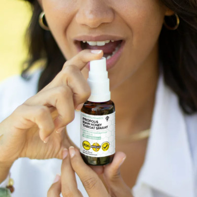 | 원재료명 및 함량 | 정제수 82%, 벌꿀 10%, 프로폴리스 추출물 6%, I-멘톨, 프로필렌글리콜(유화제) |
